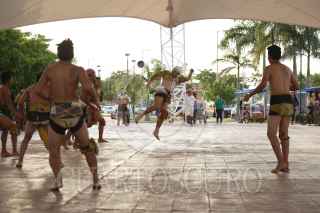 CAMPECHE, CAMPECHE, 25JULIO2018.- Como parte de las actividades para despedir al año viejo en el calendario Maya, regido por Bakab Rojo representante del Oriente, abandonando el último día del Wayeb- días de reflexión-, un grupo de mayistas de la entidad realizó el ritual de juego de pelota Maya y Purepecha, entre otras actividades. A partir de mañana iniciara una nueva etapa según el calendario de los mayas-Cero Póop, 13 Kánkínin (año 5133). FOTO: MARTÍN ZETINA /CUARTOSCURO.COM