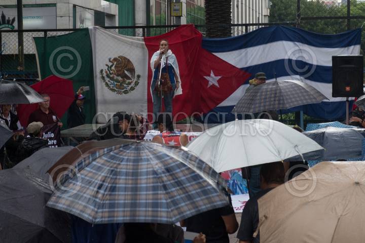 CIUDAD DE MÉXICO, 27JULIO2018.- Un grupo de personas realizaron un manifestación del hemiciclo a Juárez a la embajada de Estados Unidos con motivo del aniversario de 65 del inicio de la Revolución Cubana, con el asalto a los cuarteles de Moncada en Santiago de Cuba, y de Carlos M. Céspedes en Bayamo el 26 de julio de 1953, por 61 jóvenes dirigidos por Fidel Castro Ruíz. FOTO: ANDREA MURCIA /CUARTOSCURO.COM