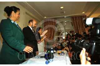 Al término de la reunión privada que sostuvieron los presidentes del PRI, PAN Y PRD, ofrecieron conferencia de prensa donde anunciaron la integración de una mesa de trabajo para la reforma del Estado. FOTO: Eduardo Loza/CUARTOSCURO.COM