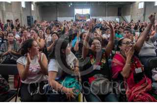 San Lorenzo Nenamicoyan, Estado de México.- María de Jesús Patricio, Vocera del Concejo Indígena de Gobierno, durante las actividades del Encuentro Nacional de Mujeres del Concejo Nacional Indígena (CNI) y del CIG; donde cientos de mujeres de todo el país arribaron a la comunidad Hñähñu con la finalidad de tejer redes nacionales e internacionales de mujeres e Intercambiar experiencias para seguir articulando una organización de mujeres anticapitalistas y antipatriarcales. El evento fue ejecutado por mujeres de la comunidad de San Lorenzo y por concejalas del CIG. FOTO: ANDREA MURCIA /CUARTOSCURO.COM