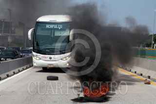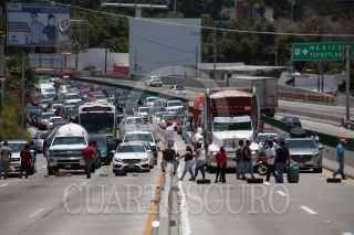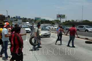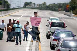 CUERNAVACA, MORELOS, 29JULIO2018.- Vecinos del pueblo de Acapantzingo mantienen bloqueado los cinco carriles del paso exprés en dirección al sur. Protestan por la detención de un joven oriundo de ahí, que ayer se defendió de un asalto en una tienda de convivencia y al forcejear con el ladrón lo hirió de muerte, según los vecinos, fue en defensa propia. El bloqueo genera molestar en los turistas que se dirigen al puerto de Acapulco. FOTO: MARGARITO PÉREZ RETANA /CUARTOSCURO.COM