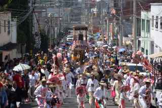 TOLUCA, ESTADO DE MÉXICO, 29JULIO2018.- Fieles católicos recorrieron las calles de Toluca con la imagen de la Virgen del Carmen, bailes de arrieros, música y alabanzas se escucharon durante el trayecto, culminado con esta procesión los festejos de la Virgen. FOTO: ARTEMIO GUERRA BAZ /CUARTOSCURO.COM