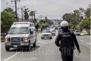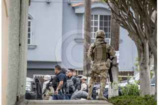 TIJUANA BAJA CALIFORNIA, 30JULIO2018.- Alrededor de la 11 de la mañana se sucitó un enfrentamiento entre elementos de distintas corporaciones policiacas con un hombre que se atrincheró en interior de un domicilio, ubicado en un fraccionamiento de Playas de Tijuana. Los hechos dejaron un saldo de un hombre muerto, mismo que mató a su esposa e hirió a dos elementos de la policía municipal durante el enfrentamiento, y un civil. En el vivienda se encontraba una menor de edad de cuatro años, quien fue rescatada por los elementos policiacos y trasladada a un lugar seguro. FOTO: CUARTOSCURO.COM