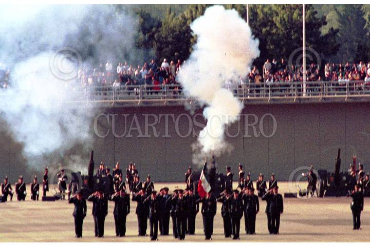 Enrique Cervantes General secretario de la Sedena y el jefe del ejecutivo federal, Ernesto Zedillo, encabezaron la ceremonia por el inicio del periodo escolar 2000-2001 del H. Colegio Militar. FOTO: Christian Palma/CUARTOSCURO.COM