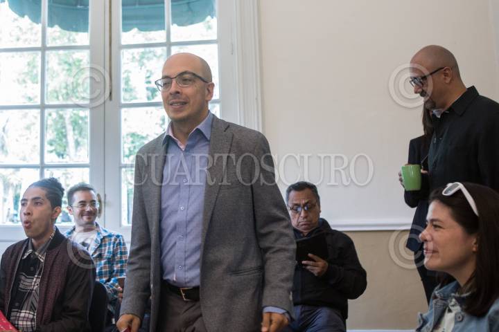 CIUDAD DE MÉXICO, 01AGOSTO2018.- Jorge Volpi, coordinador de Cultura UNAM, y José Wolffer, director de la Casa del Lago, encabezaron la conferencia de prensa sobre el evento de rap Poesía en Voz Alta, que se llevará a cabo en la Casa del Lago del 10 al 12 del mes en curso. FOTO: TERCERO DÍAZ /CUARTOSCURO.COM