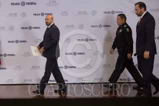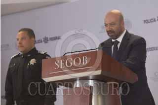 CIUDAD DE MÉXICO, 01AGOSTO2018.-Renato Sales Heredia, Comisionado Nacional de Seguridad, y Manelich Castilla, titular de la Policía Federal, encabezaron una conferencia de prensa para dar a conocer la captura de 6 detenidos en el estado de Jalisco con armas de alto poder. FOTO: TERCERO DÍAZ /CUARTOSCURO.COM
