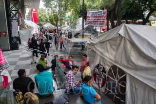 CIUDAD DE MÉXICO, 01AGOSTO2018.- Miembros de la Asamblea Nacional de Usuarios de la Energia Electrica mantienen un plantón frente a la Secretaría de Energía, en rechazo a la Reforma Energética y por un "borrón" y cuenta nueva en el cobro de tarífas de energía eléctrica. FOTO: ISAAC ESQUIVEL /CUARTOSCURO. COM