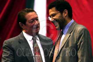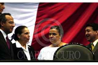 La Cámara de Diputados propuso hoy el nombre de Eric Villanueva Mukul (primero a la derecha) como candidato para responder al II Informe de Gobierno, el próximo domingo. Su postulación se confirmará mañana, según lo anunciaron los legisladores Felipe Calderón, coordinador panista, y Beatriz Paredes, actual presidenta de la Cámara. FOTO: Oswaldo Ramírez/CUARTOSCURO.COM