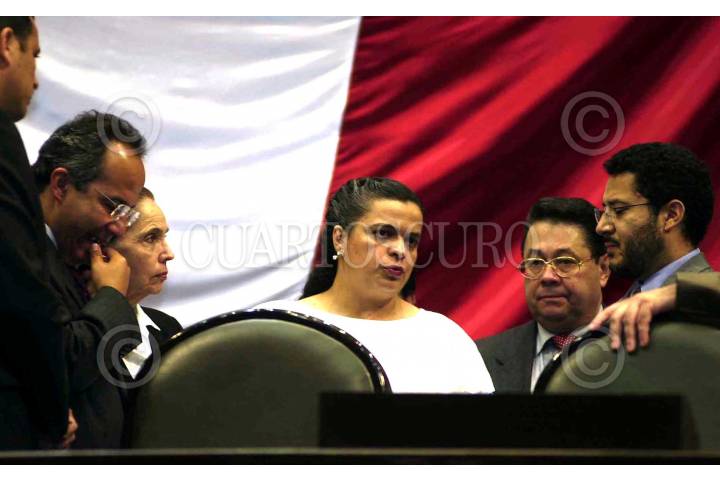 La Cámara de Diputados propuso hoy el nombre de Eric Villanueva Mukul (primero a la derecha) como candidato para responder al II Informe de Gobierno, el próximo domingo. Su postulación se confirmará mañana, según lo anunciaron los legisladores Felipe Calderón, coordinador panista, y Beatriz Paredes, actual presidenta de la Cámara. FOTO: Oswaldo Ramírez/CUARTOSCURO.COM