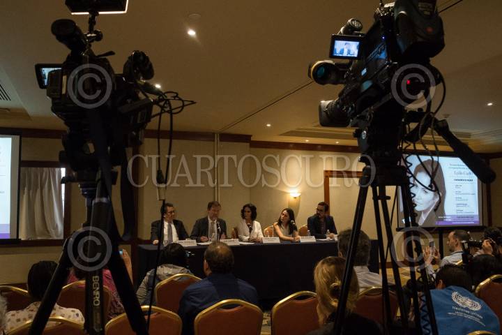 CIUDAD DE MÉXICO, 02AGOSTO2018.- La periodista Lydia Cacho ofreció conferencia de prensa para hablar sobre el avance de su denuncia; la acompañaron, Leopoldo Maldonado, Subirector de Article 29; Ana Ruelas, Directora regional de Article 19 y Jan Jarab, representante de la OACNUDH en México. FOTO: ANDREA MURCIA /CUARTOSCURO.COM