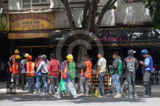 CIUDAD DE MÉXICO, 02AGOSTO2018.- Trabajadores de la construcción hacen fila para compras las tortillas durante su hora de comida, en la colonia Condesa. FOTO: MOISÉS PABLO /CUARTOSCURO.COM