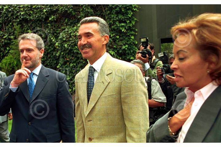 Roberto Madrazo, atestigua el abarzo de Caros Navarrete, secretario general del PRD y Elba Esther Gordillo, secretaria general del PRI. FOTO: Juan Pablo Zamora/CUARTOSCURO.COM