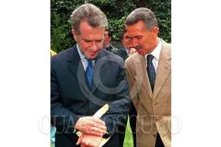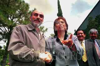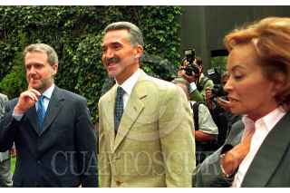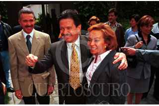 Roberto Madrazo, atestigua el abarzo de Caros Navarrete, secretario general del PRD y Elba Esther Gordillo, secretaria general del PRI. FOTO: Juan Pablo Zamora/CUARTOSCURO.COM