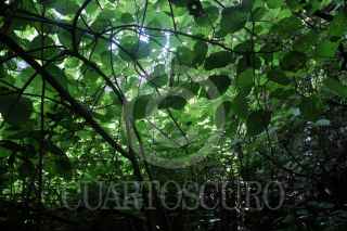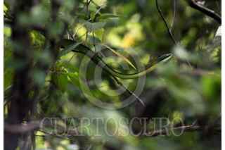 TEPOZTLÁN, MORELOS, 05AGOSTO2018.- Una serpiente color verde se oculta entre la maleza de la selva baja de la Reserva Estatal El Texcal. FOTO: MARGARITO PÉREZ RETANA /CUARTOSCURO.COM