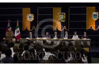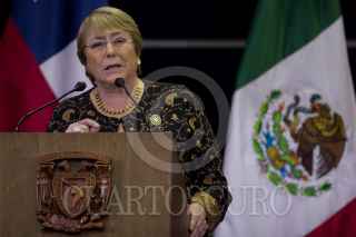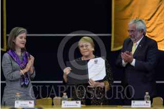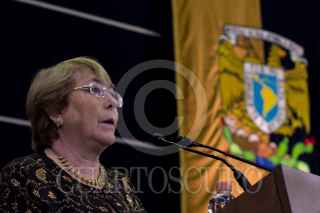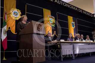 CIUDAD DE MÉXICO, 07AGOSTO2018.- Michelle Bachelet, ex presidenta de la República de Chile, impartió una conferencia magistral con motivo de la cátedra internacional por los Derechos Humanos y la Paz “Alfonso García Robles”, en las inmediaciones de la Torre de Rectoría de la Universidad Nacional Autónoma de México (UNAM). Bachelet Jeria destacó el importante valor que tienen los defensores de derechos humanos, así como de su papel y labor durante su mandato en Chile. La ex presidenta estuvo acompañada por el rector de la máxima Enrique Graue Wiechers, así como funcionarios de la universidad. FOTO: GALO CAÑAS /CUARTOSCURO.COM