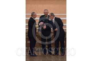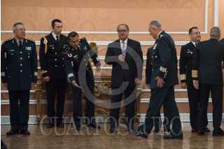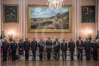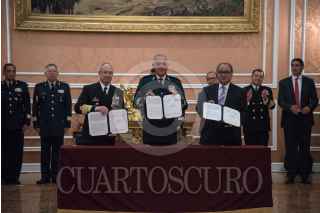 CIUDAD DE MÉXICO, 07AGOSTO2018.- Salvador Cienfuegos Zepeda, secretario de la Defensa Nacional; Vidal Soberón Sanz, secretario de Marina, y Otto Granados, secretario de Educación Pública, encabezaron la firma del convenio entre SEDENA, Marina y SEP sobre las Bases de colaboración que tienen por objeto la custodia y traslado de libros de texto gratuito de educación básica a zonas o regiones del país de difícil acceso, así como aquellas zonas que resulten afectadas por desastres naturales. FOTO: MARIO JASSO /CUARTOSCURO.COM