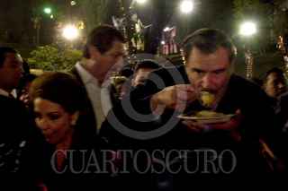 El primer mandatario aprovecha uno minutos para saborear uno tamales, durante la celebración de de la cuarta posada celebrada en los Pinos. FOTO: Oswaldo Ramírez/CUARTOSCURO.COM