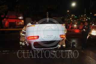 CIUDAD DE MÉXICO., 08AGOSTO2018.- Esta madrugada un hombre de profesión abogado, volcó con el auto de lujo, con valor de más de millón y medio de pesos que conducía, luego de que impactara la aguja de incorporación de Parque Lira a Observatorio en la colonia Tacubaya. El abogado fue puesto a disposición en el juez cívico, donde fue absuelto por cargos ya que no hubo daños, argumento esta autoridad. FOTO: LUIS CARBAYO /CUARTOSCURO.COM