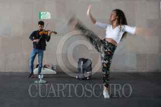 CIUDAD DE MÉXICO, 08AGOSTO2018.- Un par de jóvenes tocan música y bailan a cambio de unas monedas en la zona centro de la capital. FOTO: TERCERO DÍAZ /CUARTOSCURO.COM
