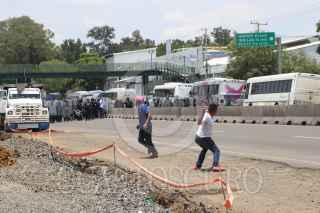 MORELIA, MICHOACÁN, 08AGOSTO2018.- Alrededor de 400 personas se manifestaron exigiendo la liberación de un presunto líder delincuencial conocido como "El Inge", bloqueando por un par de horas la salida al municipio de Pátzcuaro. La detención de Ulises Sánchez Garibay, quien fue presidente de los productores de melón del municipio de La Huacana y en el año 2013, formó parte de los grupos de autodefensas, se dio luego de que civiles armados dispararan en contra de un convoy de la Policía Michoacán, mientras circulaban sobre la avenida Lázaro Cárdenas, esquina con la calle Diego Hernández Topete en la ciudad de Nueva Italia. FOTO; JUAN JOSÉ ESTRADA SERAFÍN/ CUARTOSCURO.COM