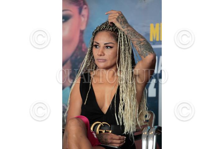 CIUDAD DE MÉXICO, 09AGOSTO2018.- La boxeadora "La Barby Juárez", durante la presentación de la función de box del próximo 11 de agosto en la Arena Ciudad de México. FOTO: GABINO ACEVEDO /CUARTOSCURO.COM