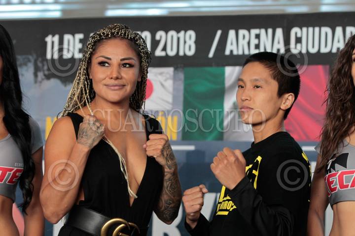CIUDAD DE MÉXICO, 09AGOSTO2018.- La boxeadora "La Barby Juárez", durante la presentación de la función de box del próximo 11 de agosto en la Arena Ciudad de México. FOTO: GABINO ACEVEDO /CUARTOSCURO.COM