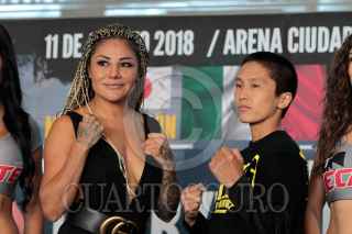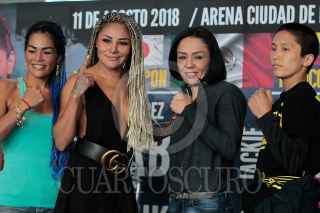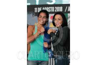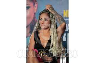 CIUDAD DE MÉXICO, 09AGOSTO2018.- La boxeadora "La Barby Juárez", durante la presentación de la función de box del próximo 11 de agosto en la Arena Ciudad de México. FOTO: GABINO ACEVEDO /CUARTOSCURO.COM