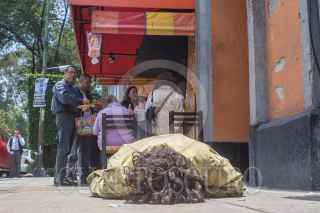 CIUDAD DE MÉXICO, 13AGOSTO2018.- Un hombre en condición de calle duerme bajo el sol a un costado de un comercio de tacos a las afueras del metro Chapultepec. FOTO: TERCERO DÍAZ /CUARTOSCURO.COM