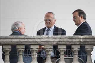 CIUDAD DE MÉXICO, 13 AGOSTO2018.- Jesús Seade Kuri, encargado negociador del Tratado de Libre Comercio de América del Norte (TLCAN) y Marcelo Ebrard Casaubón, próximo secretario de Relaciones Exteriores dialogan previo a una reunión en la casa de transición del presidente electo, Andrés Manuel López Obrador en la colonia Roma. FOTO: MISAEL VALTIERRA /CUARTOSCURO.COM