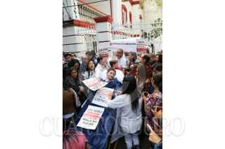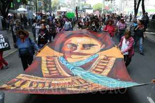 CIUDAD DE MÉXICO, 14AGOSTO2018.- Integrantes del Frente de Pueblos en Defensa de la Tierra, marcharon de la glorieta de los Insurgentes hacia la casa de transición de Andrés Manuel López Obrador donde entregaron pruebas y documentos de las afectaciones de sus propiedades por al construccion del nuevo aicm. FOTO: SAÚL LÓPEZ /CUARTOSCURO.COM