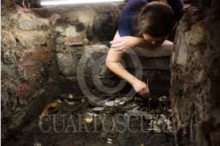 CIUDAD DE MÉXICO, 14AGOSTO2018.- El INAH informó que concluyó la excavación de la Ofrenda 174, una de las más ricas registradas por el Proyecto Templo Mayor. FOTO: CUARTOSCURO.COM