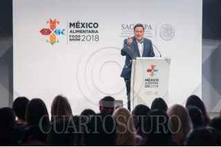 CIUDAD DE MÉXICO, 14AGOSTO2018.- Baltazar Hinojosa Ochoa, titular de SAGARPA y Enrique de la Madrid, secretario de Turismo, encabezaron la realización del "Encuentro nacional mujeres empresarias del campo: Mujer, Tierra y Orgullo", como parte de las actividades del "México Alimentaria: Food Show 2018", llevado a cabo en un importante centro de convenciones de la capital. FOTO: MARIO JASSO / CUARTOSCURO.COM