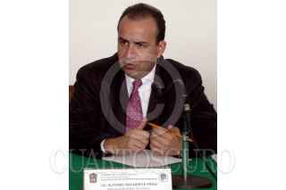 El procurador de Justicia del Estado de México, Alfonso Navarrete Prida, en conferencia de prensa hablo sobre la detención de la banda de falsificadores de billetes nacionales y dolares, llamada "Los Valdivia", los cuales fueron detenidos en Texcoco. FOTO: Gilberto Molina/CUARTOSCURO.COM