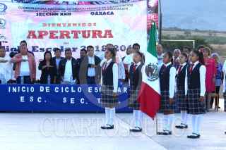 TLACOLULA DE MATAMOROS, OAXACA, 16AGOSTO2018.- Este jueves inició el ciclo escolar 2018 - 2019 por parte de los profesores agremiados a la sección 22 de la Coordinadora Nacional de los Trabajadores de la Educación, tal y como lo marca su calendario alternativo de actividades, es decor dos días (laborales) antes de lo que marca el calendario de la Secretaría de Educación Pública en el que se establece que el inicio de clases deberá ser el próximo lunes. El acto se desarrolló en la Secundaria Técnica 254 ubicada en el fraccionamiento Ciudad Yagul en el municipio de Tlacolula de Matamoros. FOTO: ARTURO PÉREZ ALFONSO/ CUARTOSCURO.COM