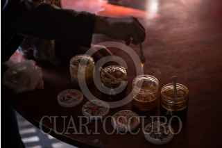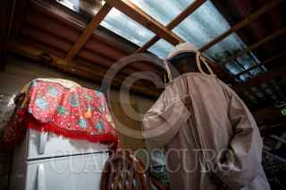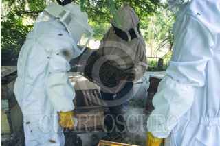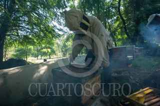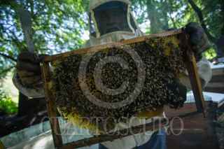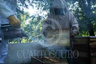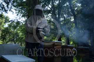 CIUDAD DE MÉXICO, 16AGOSTO2018.- Don Lauro Rivera, cultivador de plantas y apicultor, se dedica a la producción de miel orgánica con 12 colmenas en su chinampa, "pequeño paraíso" en la Ciudad llamado Laguna del toro en la delegación Xochimilco. Como una tradición familiar, cuida y mantiene a las abejas, la polinización y producción de miel, que en los últimos años, diversas investigaciones muestran el peligro que los antófilos corren. El cambio climático, la contaminación del aire, el uso de pesticidas y neonicotinoides así como la sustitución del hábitat y flores que las abejas polinizan por campos de monocultivo son las causas que varios estudios presentan como causa de las bajas en las colmenas. También enlistan la contaminación del aire, que podría impedir que las abejas perciban olores a largas distancias. Han pasado más de veinte años y aún no hay conclusiones definitivas sobre las causas. En México, la cifra estimada de colmenas alcanzaba 3.6 millones en 2016 según Sagarpa. Equivale a un promedio de 180 000 000 000, (ciento ochenta mil millones) de abejas. De las cuales, dependiendo de la región y la estación, han llegado a desaparecer hasta 50% localmente. Fue el caso de la Comarca Lagunera a finales de 2015 e inicios de 2016, cuando perdieron 53% de las 7 mil colmenas de la zona, y empeorando en mayo, quedando sólo unas 2 mil. FOTO: ADOLFO VLADIMIR /CUARTOSCURO.COM