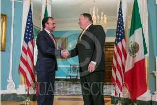 WASHINGTON, D.C., ESTADOS UNIDOS, 17AGOSTO2018.-Luis Videgaray Caso, secretario de Relaciones Exteriores, participó en las mesas de renegociación del TLCAN, se reunió con el Secretario de Estado estadounidense, Michael Pompeo, para tratar aspectos en materia de seguridad, flujos migratorios así como la situación de los niños separados de sus padres. En su encuentro, hablaron sobre el estado actual y futuro de la relación bilateral y el avance de las negociaciones del Tratado de Libre Comercio para América del Norte, mismas que continuarán la próxima semana. FOTO: SRE /CUARTOSCURO.COM
