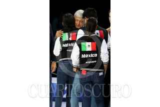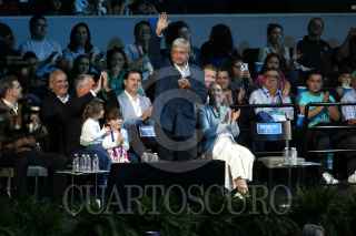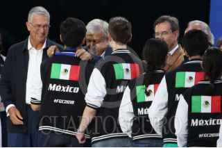 CIUDAD DE MÉXICO, 18AGOSTO2018.- Andrés Manuel López Obrador, presidente electo de Mexico, acompañado de Ricardo Salinas Pliego, presidente del grupo Salinas y Esteban Moctezuma Barragan asistieron a la final del mundial de robotica realizado en la Arena Ciudad de México. FOTO: SAÚL LÓPEZ /CUARTOSCURO.COM