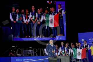 CIUDAD DE MÉXICO, 17AGOSTO2018.- Andrés Manuel López Obrador, presidente electo de Mexico, acompañado de Ricardo Salinas Pliego, presidente del grupo Salinas y Esteban Moctezuma Barragan asistieron a la final del mundial de robotica realizado en la Arena Ciudad de México. FOTO: RODRIGO RUBIO /CUARTOSCURO.COM