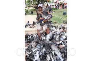 COZUMEL, QUINTANA ROO, 21AGOSTO2018.- Un señor de la tercera edad alimenta a las palomas como cada día en el parque. FOTO: ELIZABETH RUIZ /CUARTOSCURO.COM