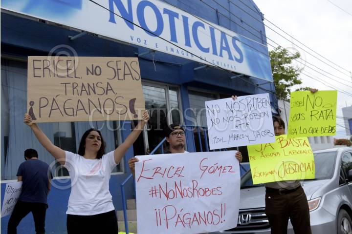 TUXTLA GUTIÉRREZ, CHIAPAS, 21AGOSTO2018.- Periodistas despedidos del periódico Noticias Voz e Imagen de Chiapas, se manifestaron afuera de dicho medio para exigir al dueño Ericel Gómez Nucamendi, quién es diputado electo por MORENA en el estado de Oaxaca, pague su liquidación conforme a derecho, luego de que fueron despedidos de manera injustificada y sin liquidación alguna después de más de nueve años de trabajo. FOTO: CORTESÍA /CUARTOSCURO.COM