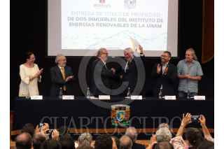 TEMIXCO, MORELOS, 22AGOSTO2018.- El gobernador del estado, Graco Ramirez camina junto al rector Enrique Graue y el director del Instituto de Energías Renovables, Jesus Antonio del Rio Portilla. Este día el Rector de la Universidad Nacional Autónoma de México, Enrique Graue, recibió del Gobernador, Graco Ramírez, las escrituras de dos terrenos; uno donde actualmente están las instalaciones del IER y otro de más de 8000 mil metros que servirá para ampliar la infraestructura del instituto que realiza investigación sobre energía. FOTO: MARGARITO PÉREZ RETANA /CUARTOSCURO.COM