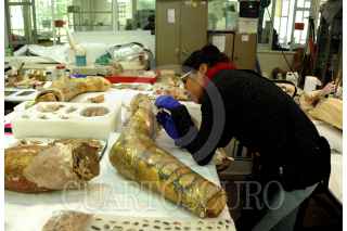 CIUDAD DE MÉXICO, 22AGOSTO2018.- Restauradores de la Escuela Nacional de Antropología e Historia continúan la restauración del conjunto escultórico de poco más de 5 metros de alto integrado por la figura de Santiago Apóstol elaborada con papel y caña de maíz, de la Parroquia de Santiago Apóstol, ubicado en Izúcar de Matamoros, Guerrero. FOTO: INAH/ MAURICIO MARAT /CUARTOSCURO.COM