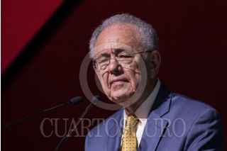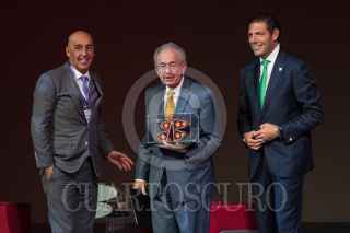 CIUDAD DE MÉXICO, 22AGOSTO2018.- Javier Jiménez Espriú, propuesto como próximo secretario de Comunicaciones y Transportes (SCT) en el gobierno del presidente electo Andrés Manuel López Obrador, recibe un reconocimiento por parte de Carlos Hank González, Presidente de Grupo Financiero Banorte, por su participación en la conferencia: "Infraestructura para el fortalecimiento de México" durante el foro Estrategia Banorte 2018. FOTO: MISAEL VALTIERRA /CUARTOSCURO.COM
