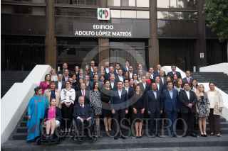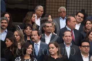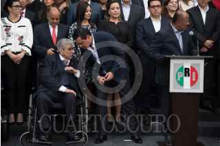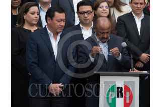 CIUDAD DE MÉXICO, 23AGOSTO2018.- Diputados y senadores electos del PRI al término de la “Primera Reunión Plenaria del Grupo Parlamentario del PRI de la LXIV Legislatura del Senado de la República”, ofrecieron conferencia de prensa para manifestar su postura de Oposición Constructiva con relación al inicio de la próxima legislatura. Además, se presentaron 12 puntos que conforman una agenda en combate a la corrupción, salud, justicia social y seguridad. En la imagen, Claudia Ruiz Massieu, presidenta nacional del partido, junto al coordinador de diputados René Juárez Cisneros. FOTO: MARIO JASSO /CUARTOSCURO.COM