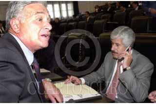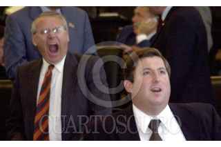 Los senadores panistas Juan José Rodríguez Prats y Adalberto Madero, observan las pantallas de votación durante la sesión ordinaria del Senado. FOTO: Juan Pablo Zamora/CUARTOSCURO.COM