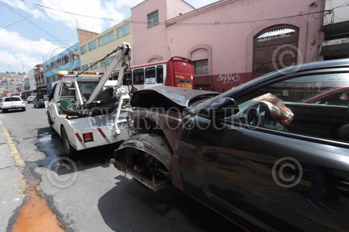 TOLUCA, ESTADO DE MÉXICO, 27AGOSTO2018.- Un escolta que perdió el control de su automóvil mientras circulaba por la avenida Rayón en el centro de TOLUCA, se estrelló en un establecimiento, lesionando a dos trabajadoras, fueron atendidas por SUEM. FOTO: ARTEMIO GUERRA BAZ/CUARTOSCURO.COM