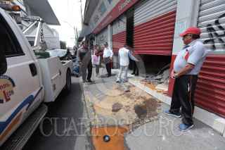 TOLUCA, ESTADO DE MÉXICO, 27AGOSTO2018.- Un escolta que perdió el control de su automóvil mientras circulaba por la avenida Rayón en el centro de TOLUCA, se estrelló en un establecimiento, lesionando a dos trabajadoras, fueron atendidas por SUEM. FOTO: ARTEMIO GUERRA BAZ/CUARTOSCURO.COM
