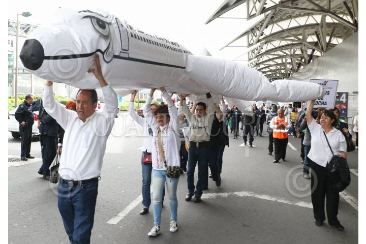 CIUDAD DE MÉXICO, 28AGOSTO2018.- Integrantes de la Asociación Sindical de Pilotos y Aviadores y ex trabajadores de Mexicana de Aviación se manifiestaron al exterior e interior de la Terminal 1 del Aeropuerto Internacional de la Ciudad de México par asolicitarle al presidente electo, Andrés Manuel López Obrador, que apoye el reinicio de operaciones de la aerolínea. FOTO: SAÚL LÓPEZ /CUARTOSCURO.COM
