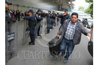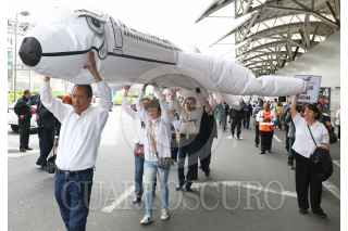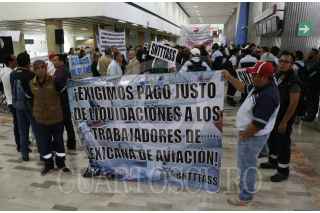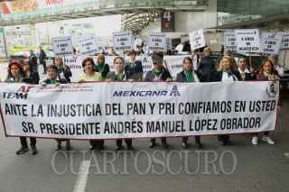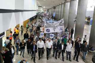 CIUDAD DE MÉXICO, 28AGOSTO2018.- Integrantes de la Asociación Sindical de Pilotos y Aviadores y ex trabajadores de Mexicana de Aviación se manifiestaron al exterior e interior de la Terminal 1 del Aeropuerto Internacional de la Ciudad de México par asolicitarle al presidente electo, Andrés Manuel López Obrador, que apoye el reinicio de operaciones de la aerolínea. FOTO: SAÚL LÓPEZ /CUARTOSCURO.COM