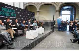CIUDAD DE MÉXICO, 28AGOSTO2018.- Eduardo Vazquez, títular de Cultura de la Capital, Ricardo Gildardo y Rodrigo Peñafiel, encabezaron la presentaciÓn de los Premios Fénix de Cine Iberoamericano, próximos a realizarse en la Ciudad. El evento tuvo lugar en el Museo Capitalino. FOTO: VICTORIA VALTIERRA /CUARTOSCURO.COM
